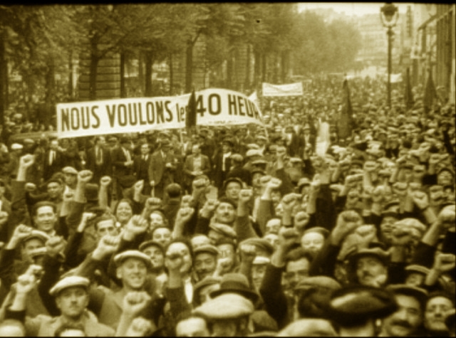 26/05Débrayage et occupations d'usines - Blum a bien été surpris par cette explosion sociale, d'autant plus que Jouhaux et la CGT avaient (selon S. Berstein, biographe de Blum) promis de ne pas mettre le nouveau gouvernement en difficulté. Mais stimulés par la victoire électorale, CGT et PC ont vu dans ce mouvement social le moyen de faire pression sur le futur gouvernement pour qu'il tienne ses promesses et aille peut-être plus loin que le simple réformisme du programme de janvier 1936.