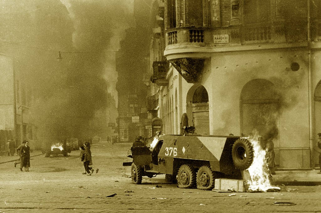 Insurrection de Budapest (République populaire de Hongrie) — Soulèvement des Hongrois contre le régime communiste. L'URSS envoie des chars au début du mois de novembre afin d'écraser l'insurrection. La reprise en main s'accompagne de centaines d'exécutions et de milliers d'emprisonnements.