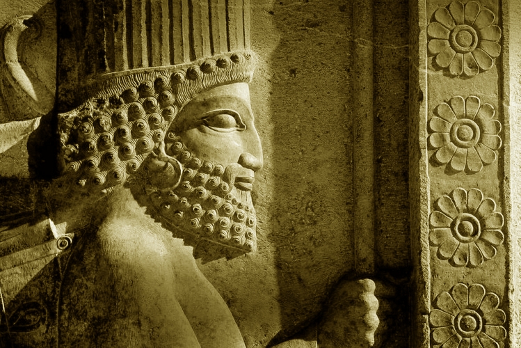 La construction d'un relief commence dans l'Apadana, un complexe cérémonial à Persépolis. Le relief représente Darius Ier et Xerxès Ier recevant un hommage.